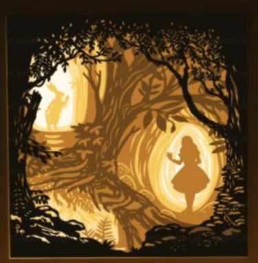 Dans l'univers enchanteur d'Alice au Pays des Merveilles, une magnifique shadowbox prend vie grâce à un découpage précis en papier et à un éclairage LED subtil. Cette œuvre d'art invite le spectateur à plonger dans un monde de rêve et d'imaginaire, où des personnages iconiques comme le Lapin Blanc et la Reine de Cœur jaillissent des ombres projetées par la lumière douce. Les détails minutieusement découpés ajoutent une dimension captivante, créant une scène qui évolue avec l'angle de vue. Le jeu de lumières et d'ombres stimule l'imagination et transporte chacun dans un paysage féerique, rappelant que l'aventure et la curiosité demeurent toujours à portée de main. Cette shadowbox est une célébration de la créativité et un hommage éclatant à l'œuvre intemporelle de Lewis Carroll.